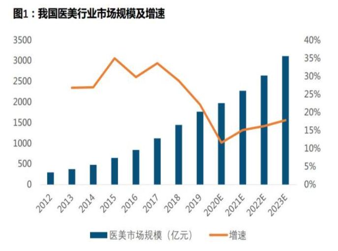 图片说明:我国医美行业市场规模及增速,来源中航证券研究所
