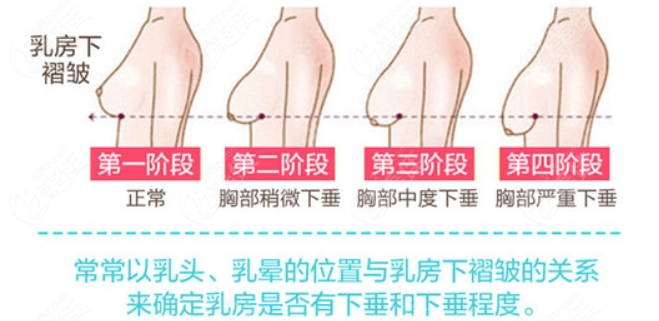 3、老年性乳房下垂,这种情况是因为乳房皮肤、脂肪、支持组织和腺体都出现了萎缩情况,使乳房呈空囊状下垂。