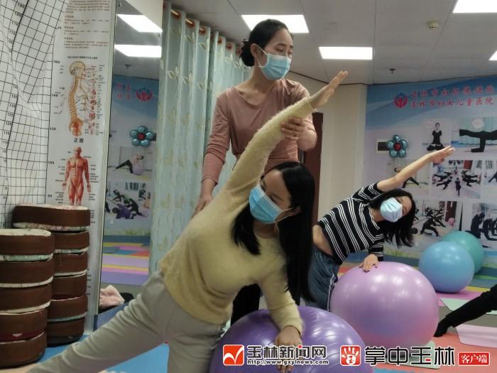 “来,往上起、坐下、收缩、放松……”12月11日,记者来到玉林市妇幼保健院妇女保健科采访时,穿着瑜伽服的产后康复师庞秋梦正在给宝妈们示范盆底场景训练操。她认真细致地对宝妈们的体式动作作出指导。宝妈们随着音乐,学习正确的呼吸和动作技巧,摆出正确的身体姿势锻炼肌肉组织力量。