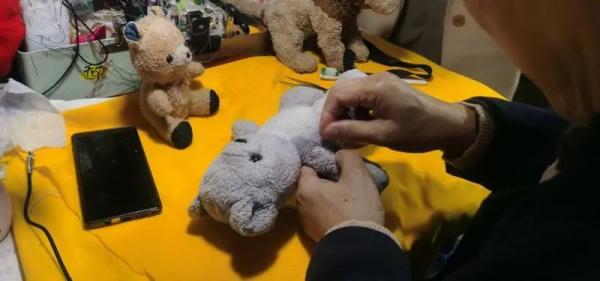 挂急诊的“小朋友”是一只叫“灰灰”的小熊,它的绒毛因为反复被抚摸已经不再立体,一条胳膊下还裂了口。