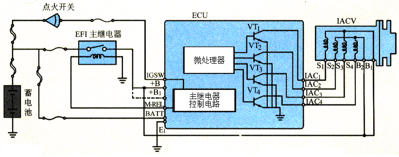 熄火后初始位置控制:熄火后,ECU的M-REL端子继续给EFI主继电器供电2s,以便步进电机完全打开(比如125步),旁通空气量达到大 。