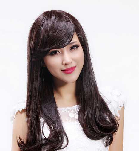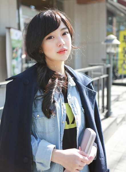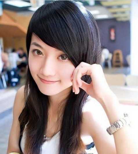 时尚又有个性的女生斜刘海发型图片,发型刚好可以凸显鹅蛋脸,这样看多了几分迷人的气质哦!