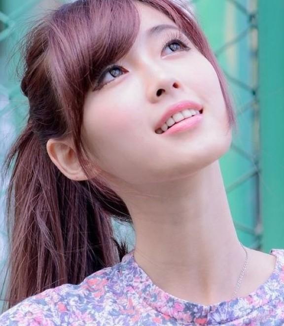 可爱清新斜刘海发型,时尚的淡紫色染发,给发型倍增几分气质魅力,长发基础上简单扎个马尾发型,短短的斜分刘海的搭配下,修颜还是可爱清新感。