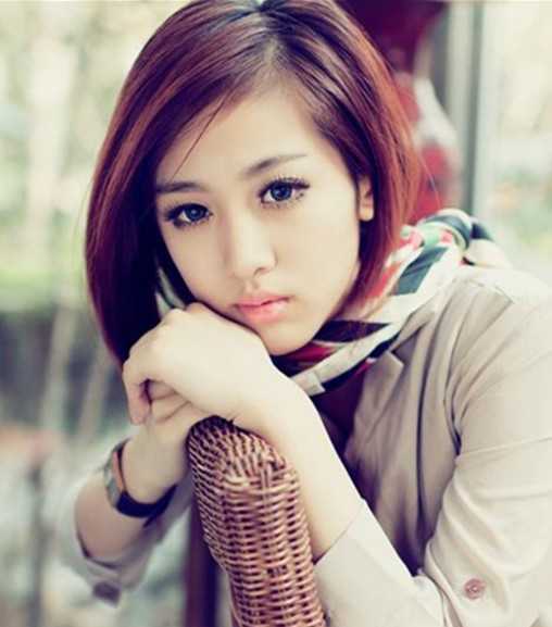 这款个性的斜刘海发型,十分清新宜人,斜刘海的设计有地修饰了脸部的轮廓线条,搭配酒红色的染发设计,更是精神万分。