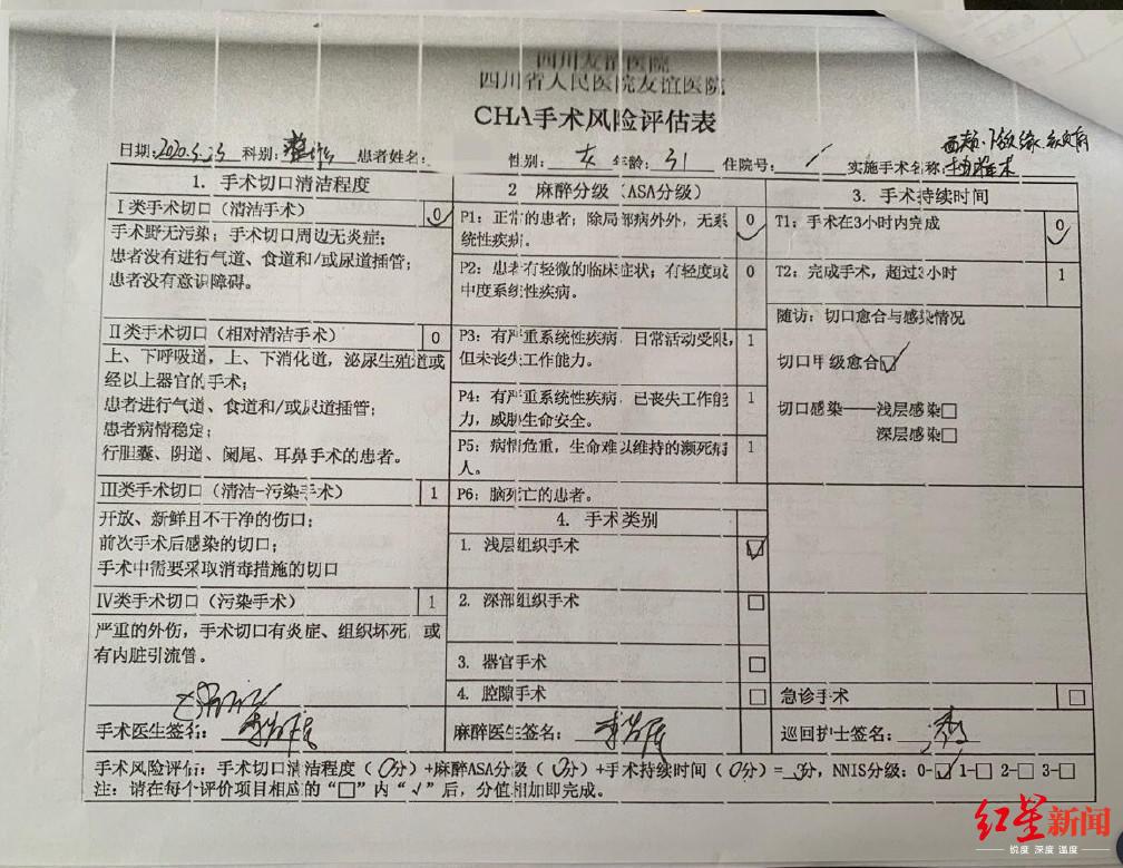 ↑蒋女士提供的手术风险评估表