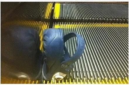 孩子脚小鞋小,再加上如果鞋选得不恰当,很容易卡在手扶梯的缝隙里,造成危险。