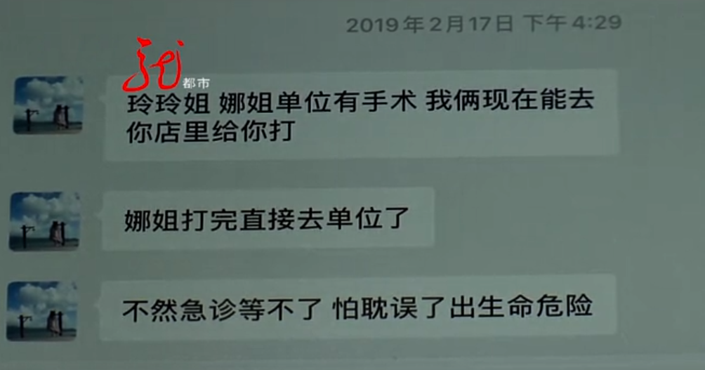 宋玲玲说,给她打针的医生叫曹娜,是通过密山爱民医院一个叫王冰的人联系的,出了问题后 ,她也曾经多次通过微信和王冰、曹娜沟通。