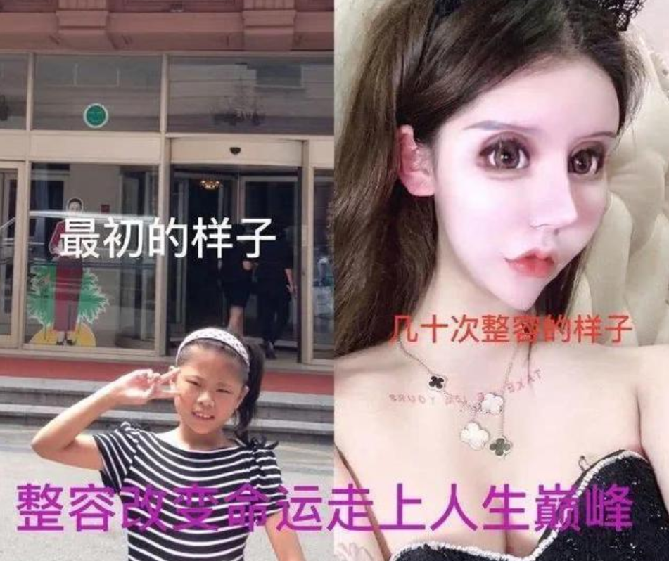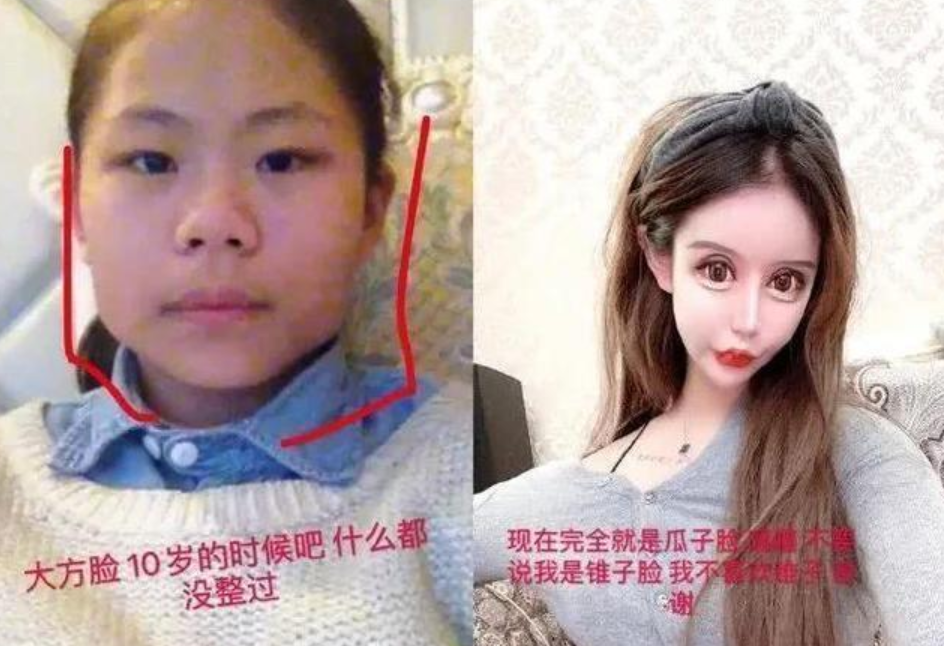 从照片中来看女孩小时候的模样确实有些一般,但也没有那么难看,只不过是没有那么美罢了,可是女孩自己并不满意,于是开始从眼睛整起,之后从鼻子到嘴巴再到整体脸型,几乎脸上每个地方都整过了。