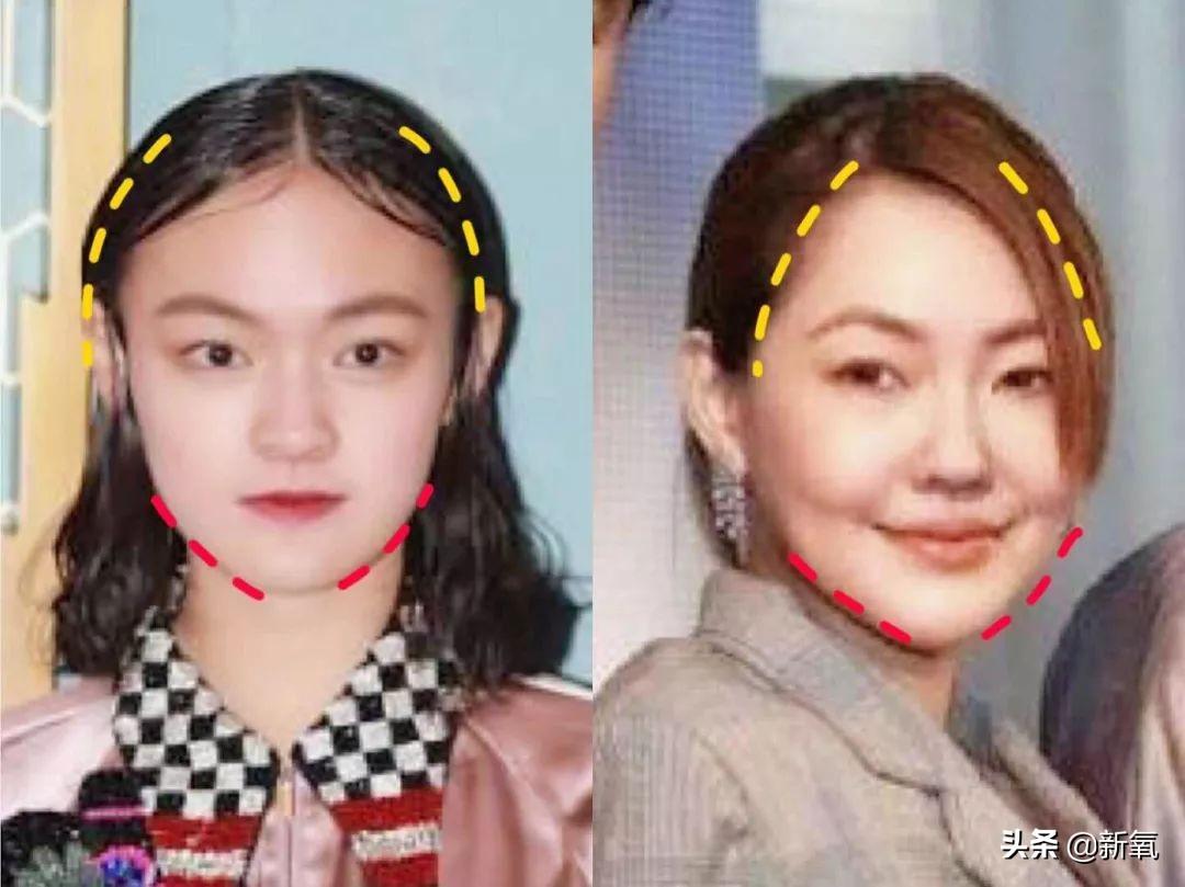 这里大家肯定有疑问了,为什么陈都灵和奶茶妹妹的头顶高度还行,但颞部却很窄?头骨的发育和身高发育其实很像,在相对条件下,有些地方发育多了,有些地方就会不足。注意看,她们看似头顶高度够,其实是因为脑门比较高哦,也就是说该颞部发育的骨量,都长在了脑门上。