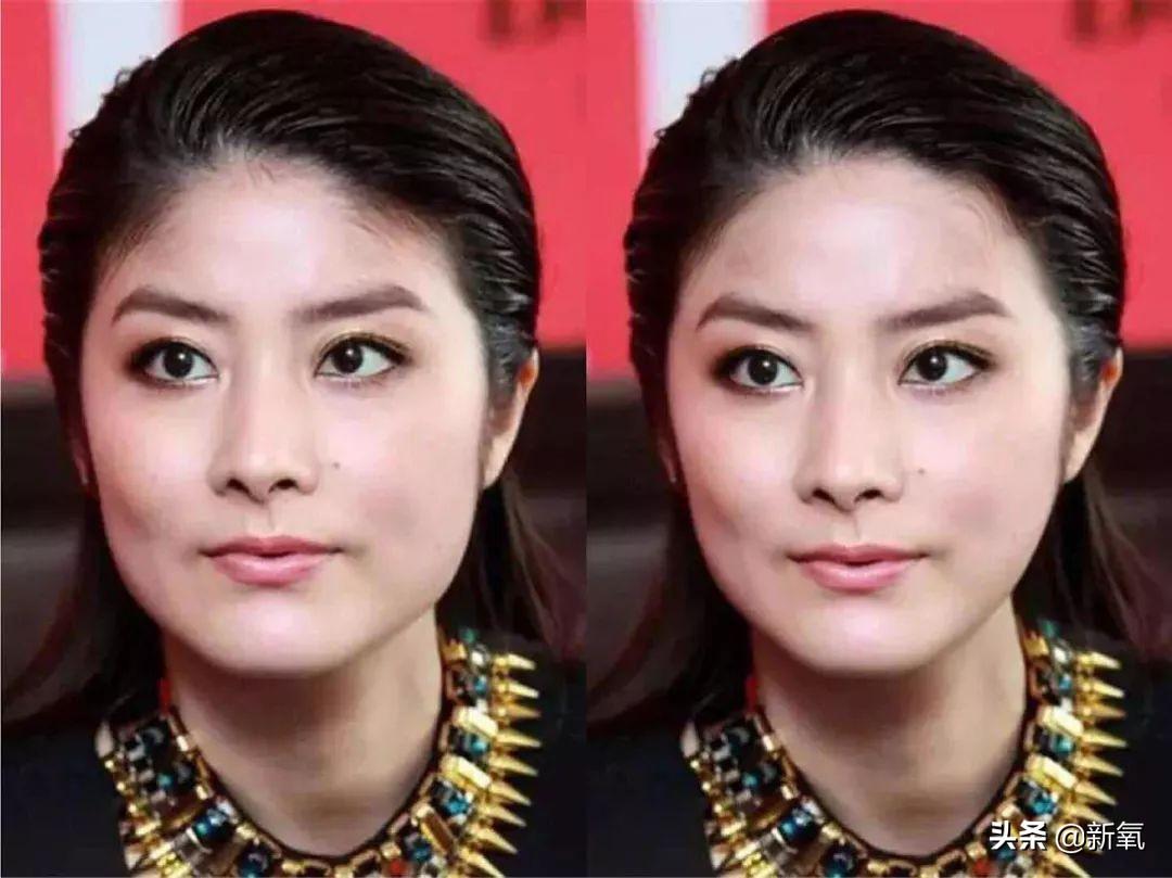 刘涛从来都是高颧骨+太阳穴凹陷的反面例子,但归根究底,氧叔认为其实是她的颞部太窄导致。比起各种说让她封太阳穴和颧骨内推的建议,只要我们稍稍改一下刘涛的颞部宽度,即使颧骨不变,整张脸的局促感是不是降低了?