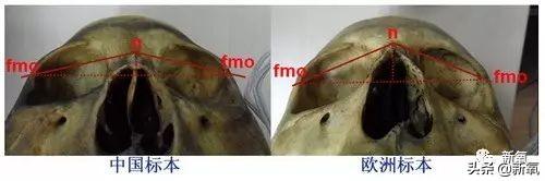 一般来说,鼻颧角越大,代表鼻根点(n)到两侧眼眶外侧(fmo)的深度越小,面部越扁平,反之越立体。