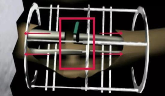 固定器反方向扩大了间距,也拉大了骨折处的距离 图源:互联网