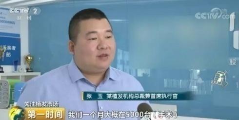 某植发机构总裁兼执行官 张玉:我们一个月大概有5000台手术,如果按照现在30多个院部,平均一个院部每天也就是在四五台手术。