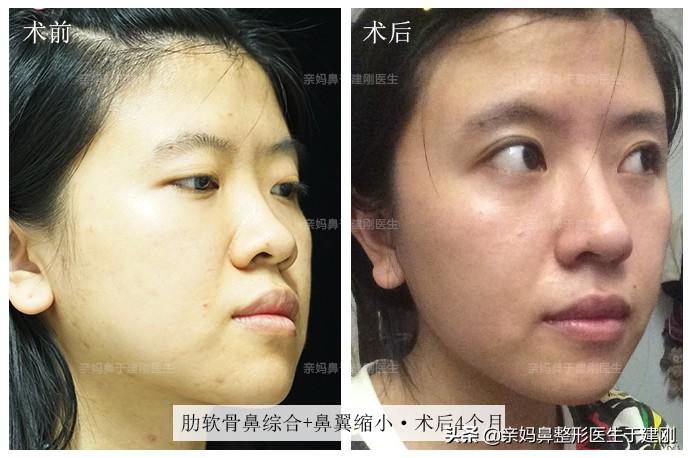 术后4个月,姑娘的鼻翼偏宽、鼻梁低平、鼻尖缺乏突出度等在术后都得到了很好的改良,鼻部整体精致立体,姑娘的气质都显得温柔多了。