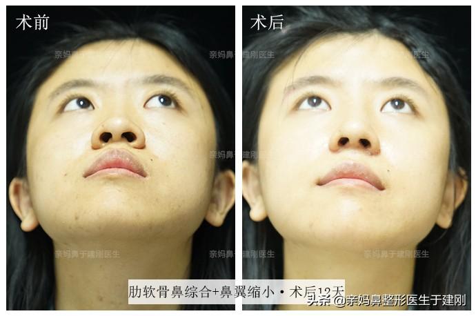 术后12天, 姑娘恢复得还不错,鼻部切口疤痕痕迹已经很淡了,完全不用担心疤痕问题。