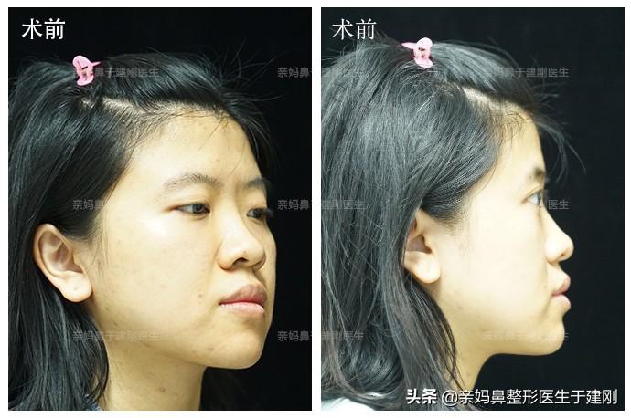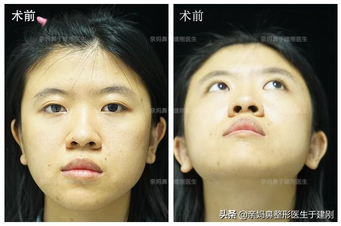 为什么我一直强调自然"亲妈鼻"?就拿姑娘来说,本身的额头比较平,所以手术不能把鼻梁鼻根做太高,要尽量做得自然精致一些,否则过于高挺会变成一眼假的"通天鼻",突兀违和。 对于亚洲人而言,一个好看的鼻子,高度不应该为主要,重点在于鼻头鼻翼的形态,以及鼻子本身的大小和脸型、比例的适配度。