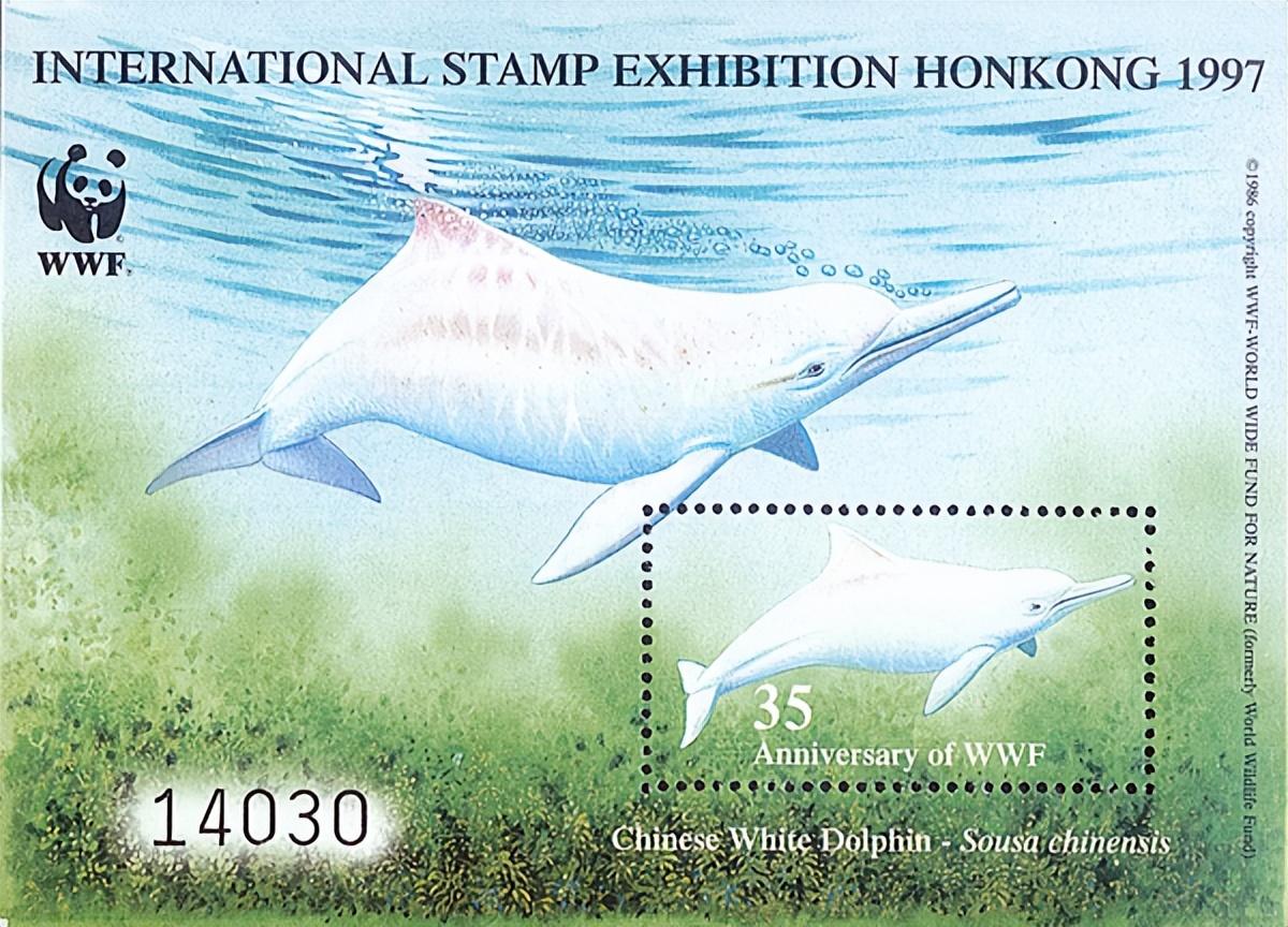 图3 世界自然基金会于1997年发行的中华白海豚主题邮票 | 图源:WWF