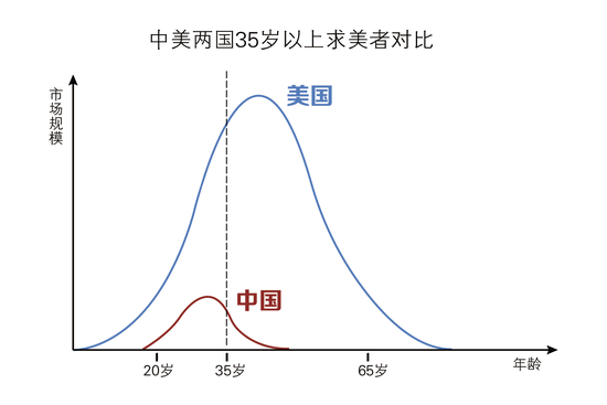通常来讲,35岁以上女性经济能力更强,消费能力更高,而中国35岁以上医美消费群体需求量远未释放完全,几乎处于冰冻状态,未来这部分人群的需求增长将成为带动医美市场上升快的动力。