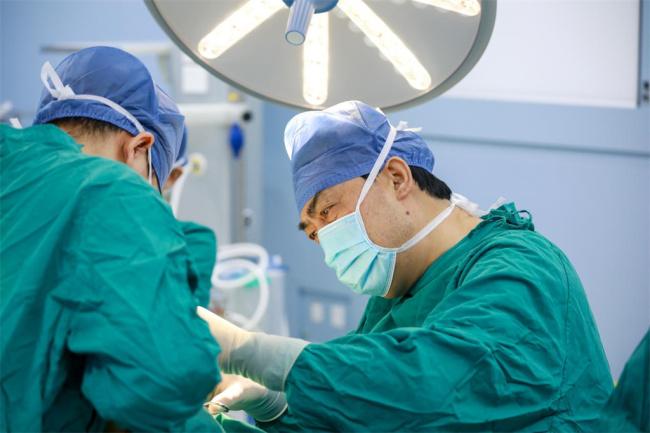 2002年,童先生查出患有胸腺恶性肿瘤,并做了肿瘤切除术。两年前,他发现原来伤口的表面长出了硬块,到了今年8月,硬块已有一个馒头大小,吃饭、呼吸胸壁都会胀痛难忍。“我听说西安国际医学中心医院有不少好医生,专程前来求救。”经过整形医院、胸科医院专家会诊,确认是旧病复发,由胸科医院李文海院长、崔凯主任为患者进行胸骨全切,双侧部分肋骨切除,以及人工胸壁置换术,由整形医院整形外科主任王爱武以及颌面外科主任籍建华,进行肿瘤切除后心肺外露创面的修复重建。