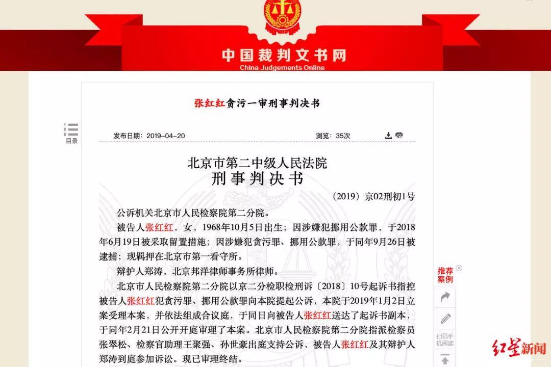 法院在2019年3月对此案作出一审判决:以犯贪污罪和挪用公款罪,两罪并罚判处张红红有期徒刑8年,并处罚金70万元。
