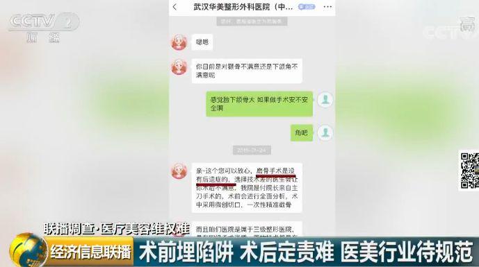 记者在某APP平台武汉华美外科整形医院的官方号咨询下颌角截骨手术,客服人员告诉记者,手术不会产生任何后遗症,记者又先后走访了武汉和北京的几家整形医院。