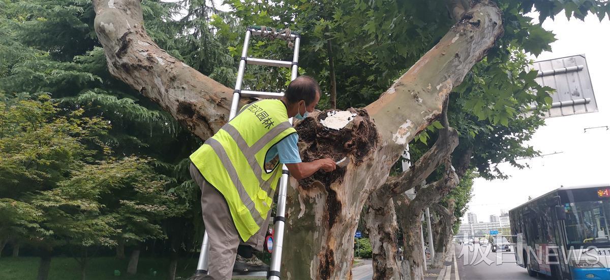 “树木老化,天牛钻蛀,风吹雨淋,都会导致树木有创伤洞口。”武昌区绿化队李玲告诉记者,需要及时修复及时止损,否则那些中老年树木就会断枝或倒伏。