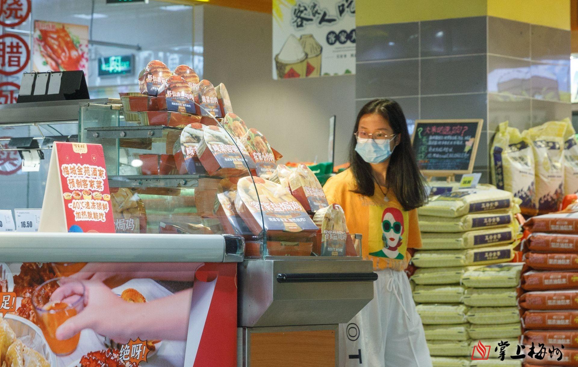 我市部分超市货架已摆上各种客家菜预制菜。(林翔 摄)