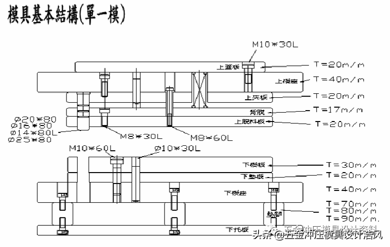 上模夹板:是为固定上模(凸模或凹模)及其中的冲头和卸料装 ,减压而设.