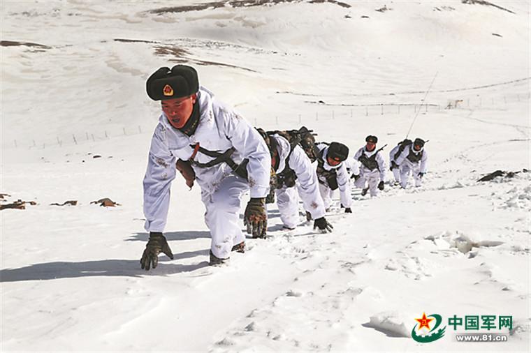 别迭里边防连官兵翻越“好汉坡”,前往海拔4000多米的别迭里山口巡逻。王军强摄