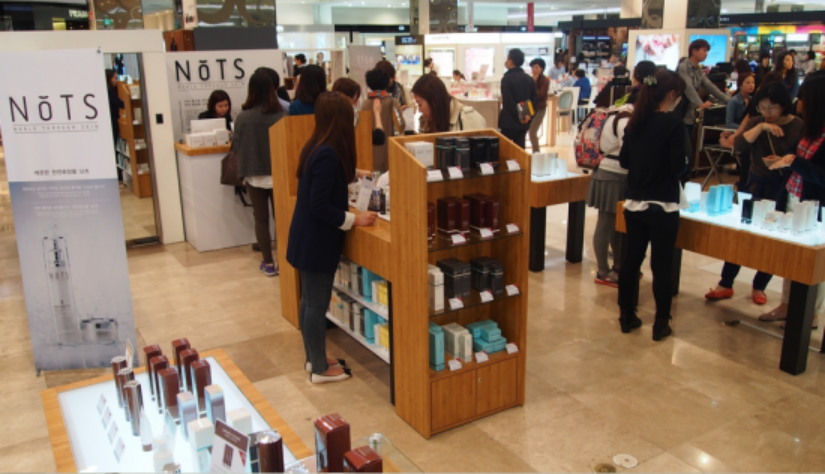 (在韩国,化妆品店随处可见)