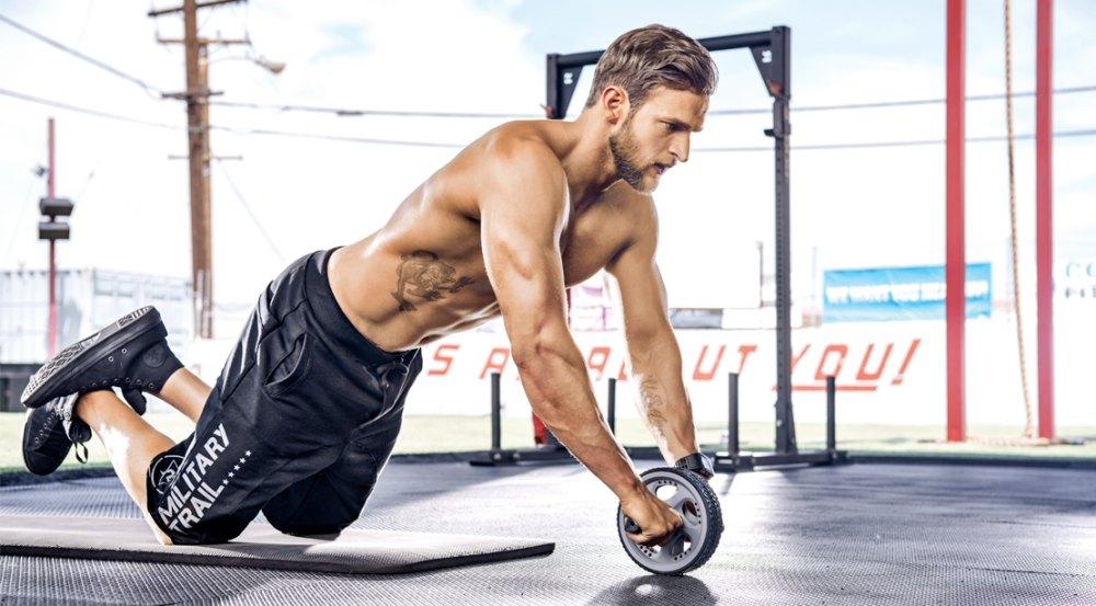 健腹轮滑动动作对我们的核心有大的训练作用,你会前侧的腹肌剧烈收紧,如果我们想用这个动作来更多地训练腹斜肌的话,可以在向前滑动的时候向左右侧方滑出,建议你在动作向前滑出的开始阶段把上背部稍稍拱起,避免腰部反弓,这样你就可以减轻腰部的发力,更多地去刺激到你的腹斜肌,避免腰部肌肉劳损,保护腰椎。