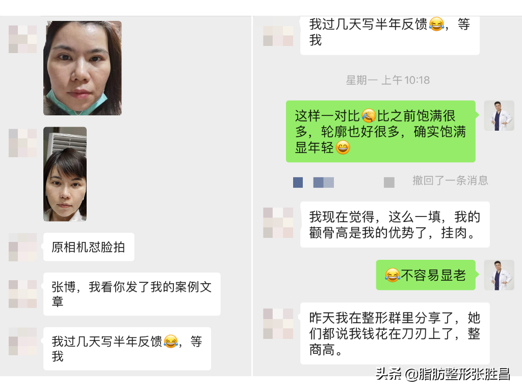 而因为她不想大动筋骨,怕创伤太大,所以选择了来找我做脂肪填充,没去做磨骨、截骨手术。