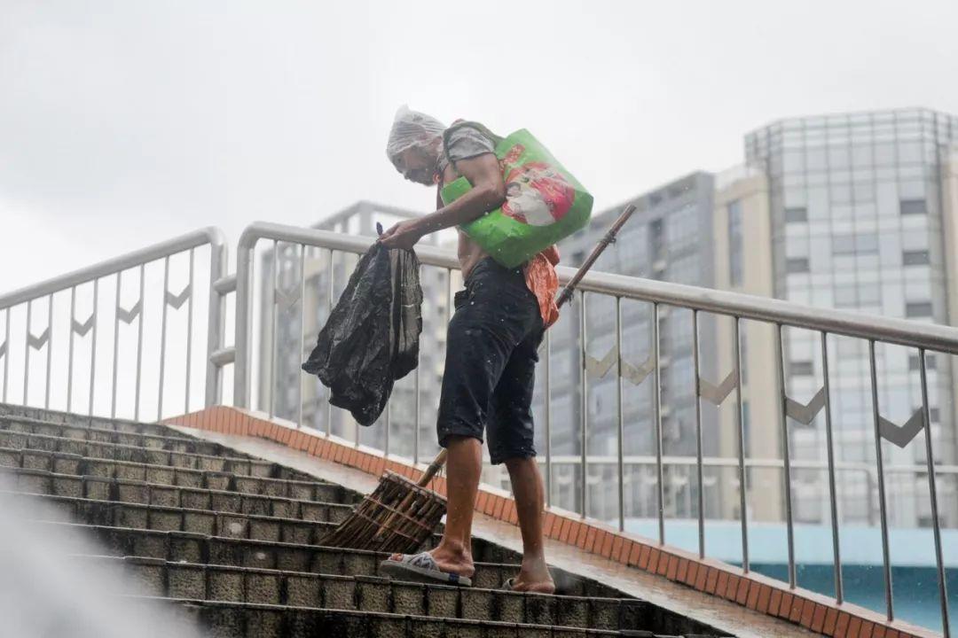 早上起来和午休过后,他都会拿起扫把和簸箕做清洁工作,而且不是那种各人自扫门前雪的类型,他清洁的范围不仅仅包括自己居住的地方,整个天桥上上下下他都会去扫,甚至延伸到附近的马路上,扫的还特别干净,并且是风雨无阻,几乎每天都要扫。由于他的主动帮忙,原本负责那个地段卫生的环卫工工作反而轻松了不少。