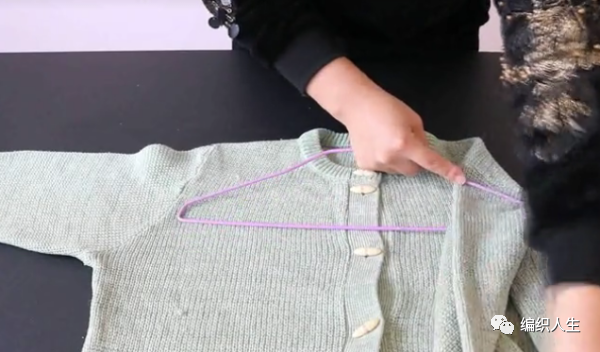 1、把晾衣架放在摊平的毛衣的衣领处。