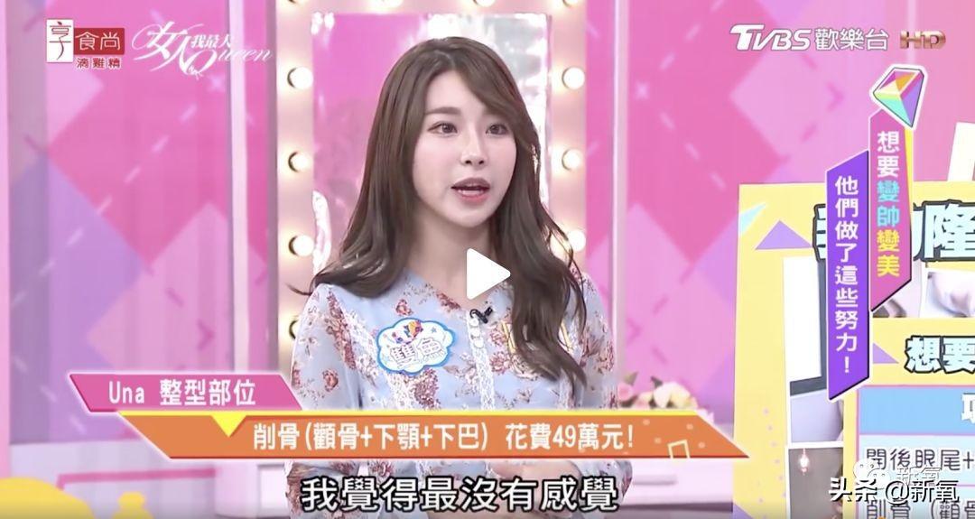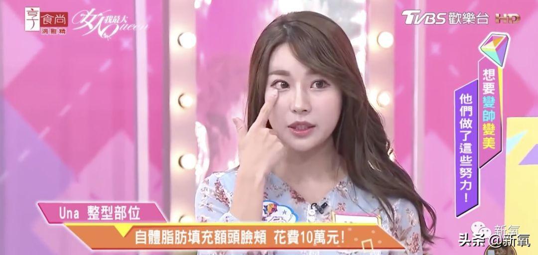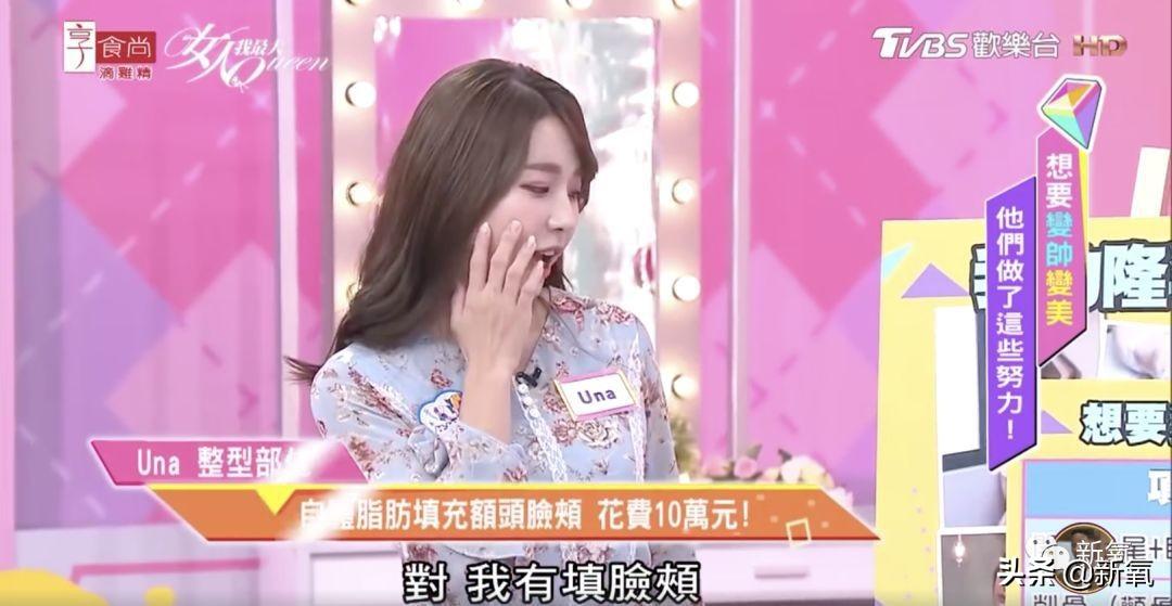 继续我们滴整形观察!后一个项目是脂肪填充。una花费了10万元新台币(折合人民币23150元),用来填充自己的额头、脸颊、以及下巴。