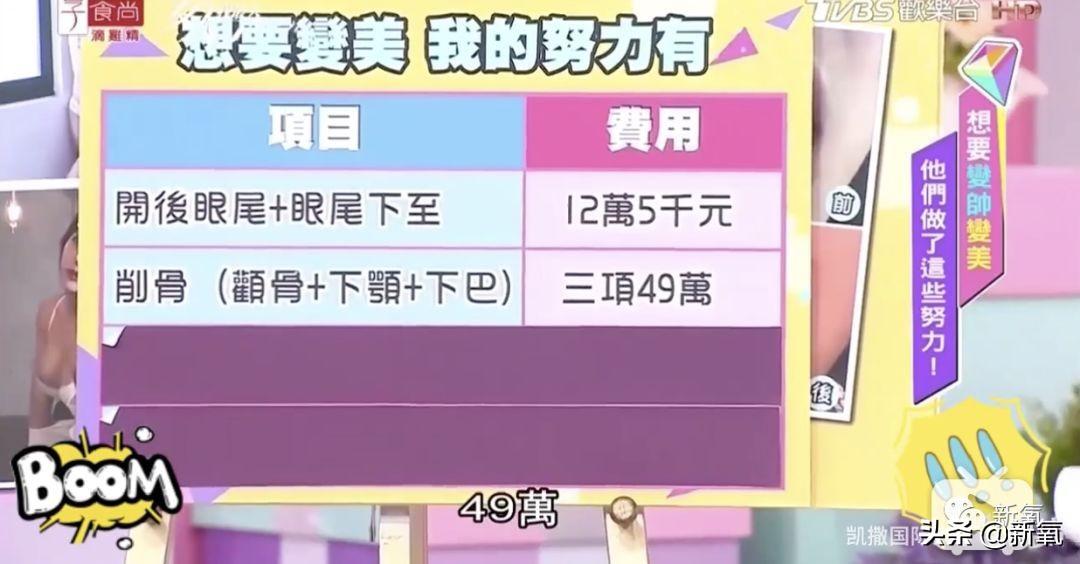 una紧接着就展示了她的大项目:削骨。包括颧骨、下颚骨和下巴。一共花费四十九万新台币(折合人民币113410左右)。台湾那边和我们的讲法还挺不一样的,羊估计她说的削颧骨应该是想说颧骨内推,下颚骨就是我们说的下颌角啦。