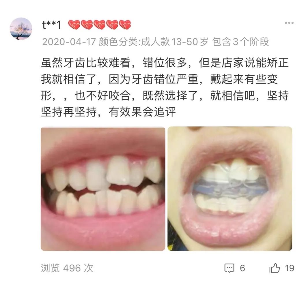 还有一些牙齿问题严重的人信心满满的发了自己的使用图并坚信几百元的塑料套子能矫正好自己。