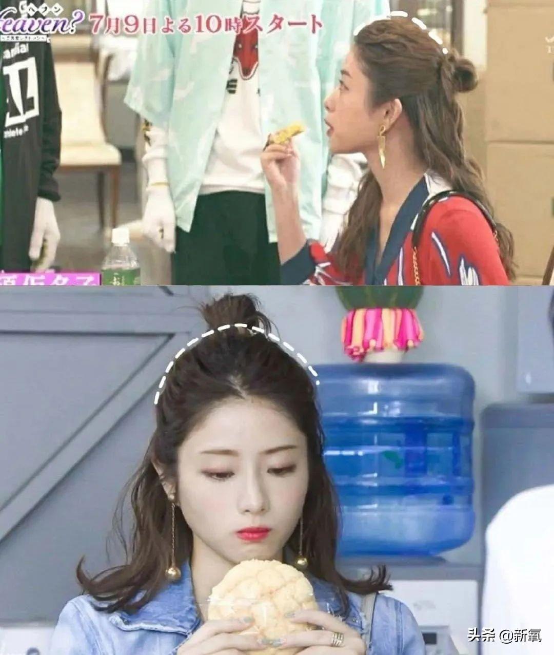 石原里美的颅顶并不优越,但是人家会做造型的说。方法就是:用夹板把发根定型,再去把头发扎起来,挑起头顶头发形成圆弧状。这样可以制造一个假的颅顶出来,规避自身缺点。