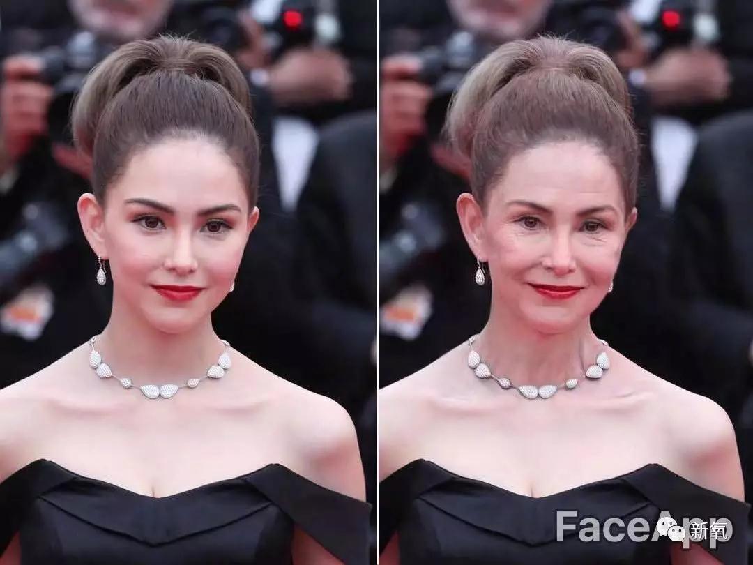 本身上唇就比较薄的范冰冰,加上滤镜后几乎看不出上嘴唇了。这个app做的还挺真实。