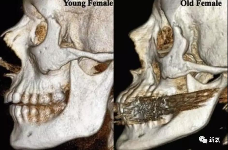除了上述的皮肤和软组织变化,衰老的过程中,我们的骨骼也在发生变化,美国罗切斯特大学医学中心(University of Rochester Medical Center)的研究人员发现人类在衰老过程中,颧骨和鼻骨开口处向后萎缩,下颌骨在长度和高度上也会萎缩,让脸的下半部分失去支撑,因此脸会向下垮。