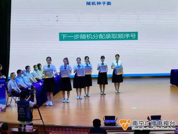 今天(6月21日),南宁市教育局开展南宁市2022年市区民办初中学校电脑随机录取。南宁市新民中学、南宁市三美学校、广西大学附属中学、南宁北附实验学校、南宁高新技术产业开发区民大中学、广西希望高中初中部等6所民办初中参与当天的电脑随机录取。