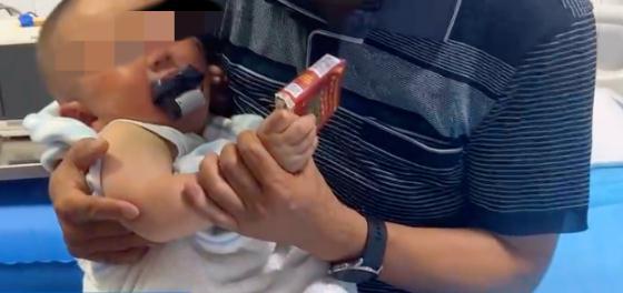 终,将“咬住”男婴嘴唇的电动指甲刀成功取下。