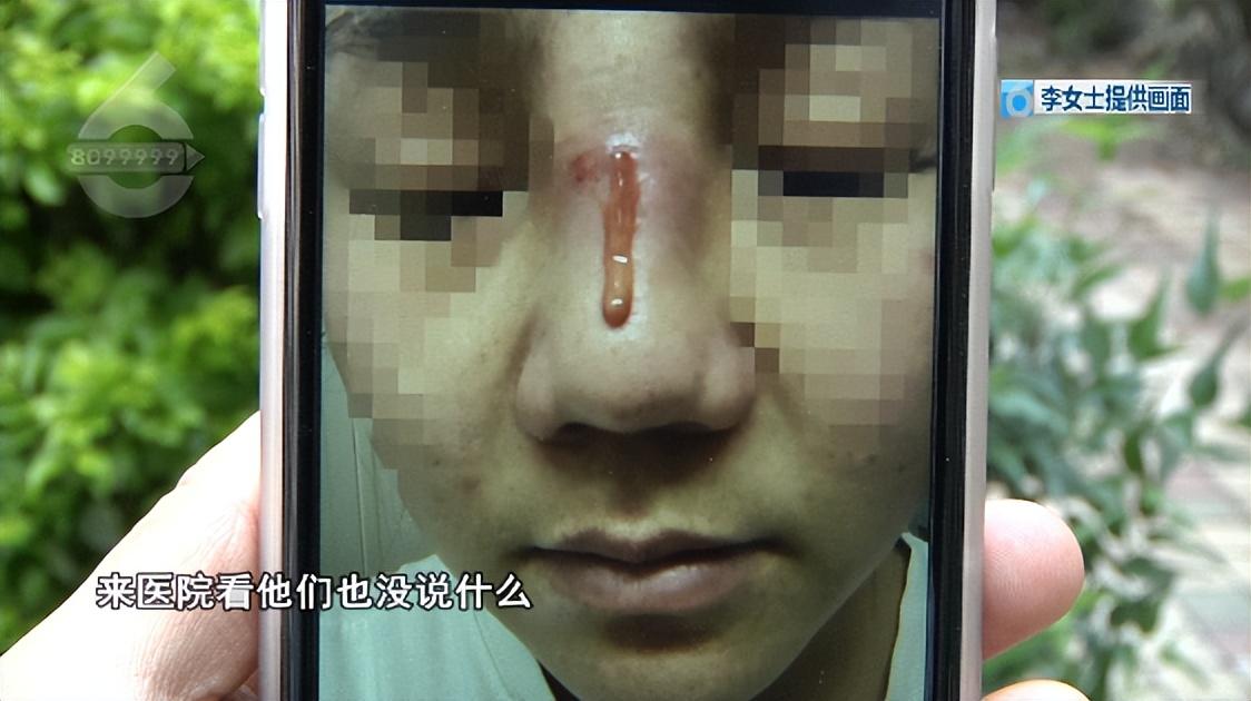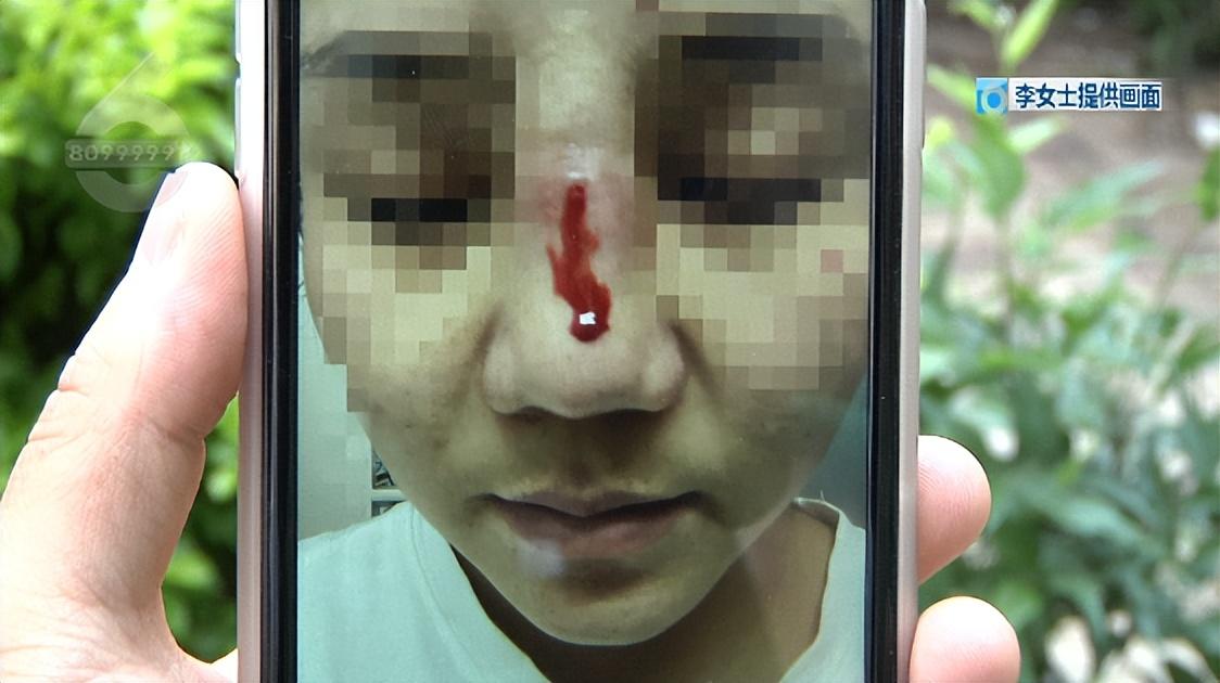 上午11点,在这家美容机构附近记者见到了李女士。在她的鼻梁骨上可以看到一个红色印记。