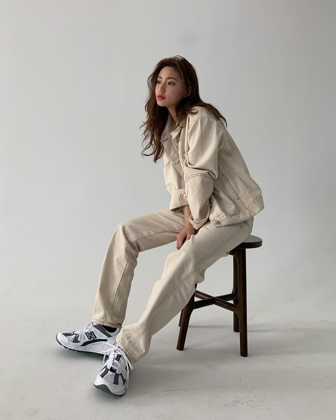 尝试燕麦牛仔搭配同色裤子呀