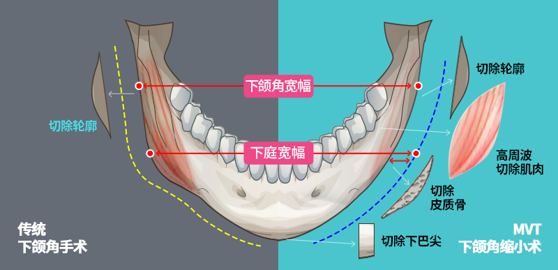 而骨骼肥大外扩导致的脸大,就需要通过下颌角手术来改良。下颌角手术分为下颌骨切除术即截骨术,与皮质切除术也就是俗称的劈外板。如果求美者的下颌角肥大且外扩,尤其是靠后面部分比较宽大,更适合进行下颌角截骨。如果求美者的下颌骨形态只是本身肥大,不存在外扩问题,那么选择劈外板更加合适。