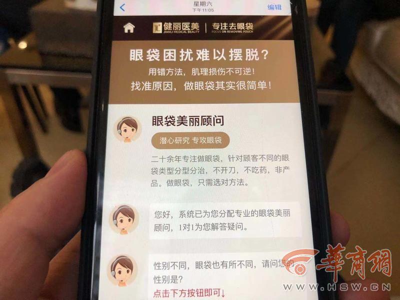 10月31日,她通过广告了解到西安市科技路上一家名为“西安健丽医院管理有限公司高新医疗美容诊所”的机构可祛除眼袋,“我去咨询,但对方说他们不手术、不吃药,半小时做好,我没经住游说,当天下午就交了14433元,在这里祛除双眼袋。”