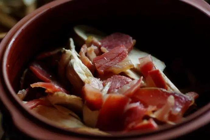 清晨竹林挖出的笋子,倒入井水与火腿慢炖,软而未烂,绵密甘甜。火腿被雪藏良久的油脂,和被压制的肉香,经反复炖煮,才能被唤醒。封藏发酵已久的醇香土地里的清新自然浓缩成一锅炖汤,腊月里的野趣家乡的温暖都在这里了。