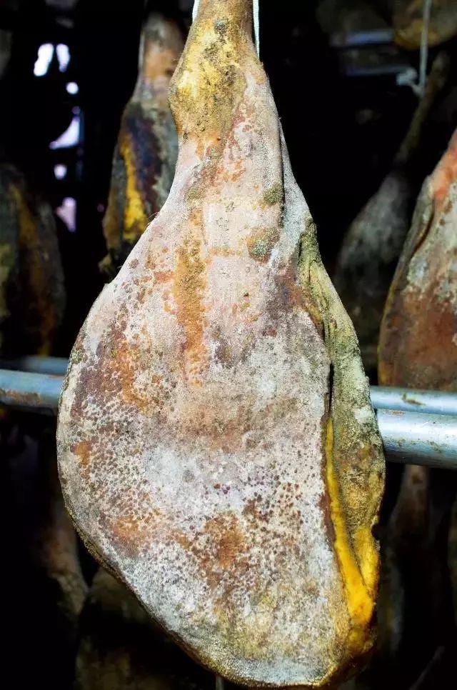 ▲ 别被老窝火腿表面的霉吓到,颜色越深重,发酵时间越长,肉质越醇美。图/网络