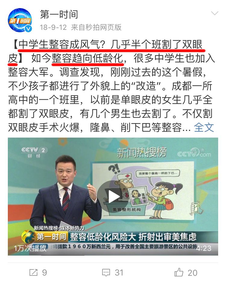 中学生、整容、孩子主动要求、家长带着去。有位辣妈更狠,女儿才7岁,就直接割了双眼皮。