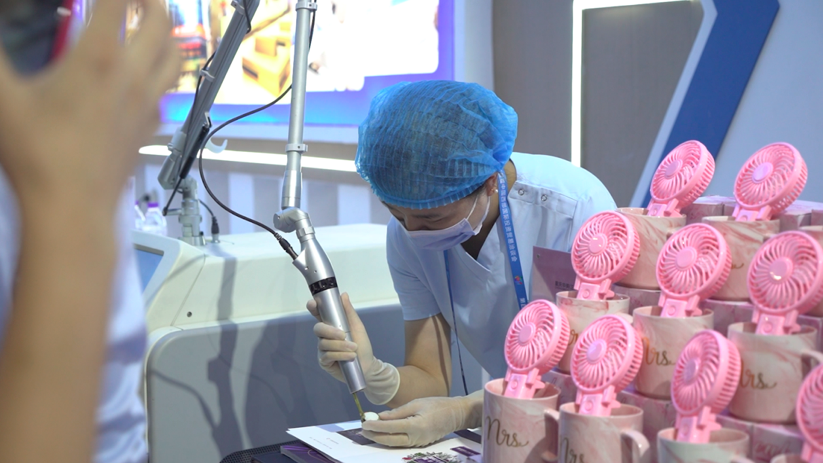 展会现场,一台用于祛斑调节的超设备正在“小心翼翼”地祛除鹌鹑蛋表面的黑色斑点,引来了许多观众围观。区委领导视察大健康产业馆,也在重庆华美的展台前看到了医美黑科技。“这和临床皮肤调节的祛斑原理是共通的,运用激光的光热作用,震碎皮下的黑色素颗粒,然后通过新陈代谢排出体外,达到改良皮肤色沉的目的,”重庆华美的工作人员介绍称,“我们医院是重庆地区引进超的机构,2021年我们的临床累计调节次数超过10000次。”